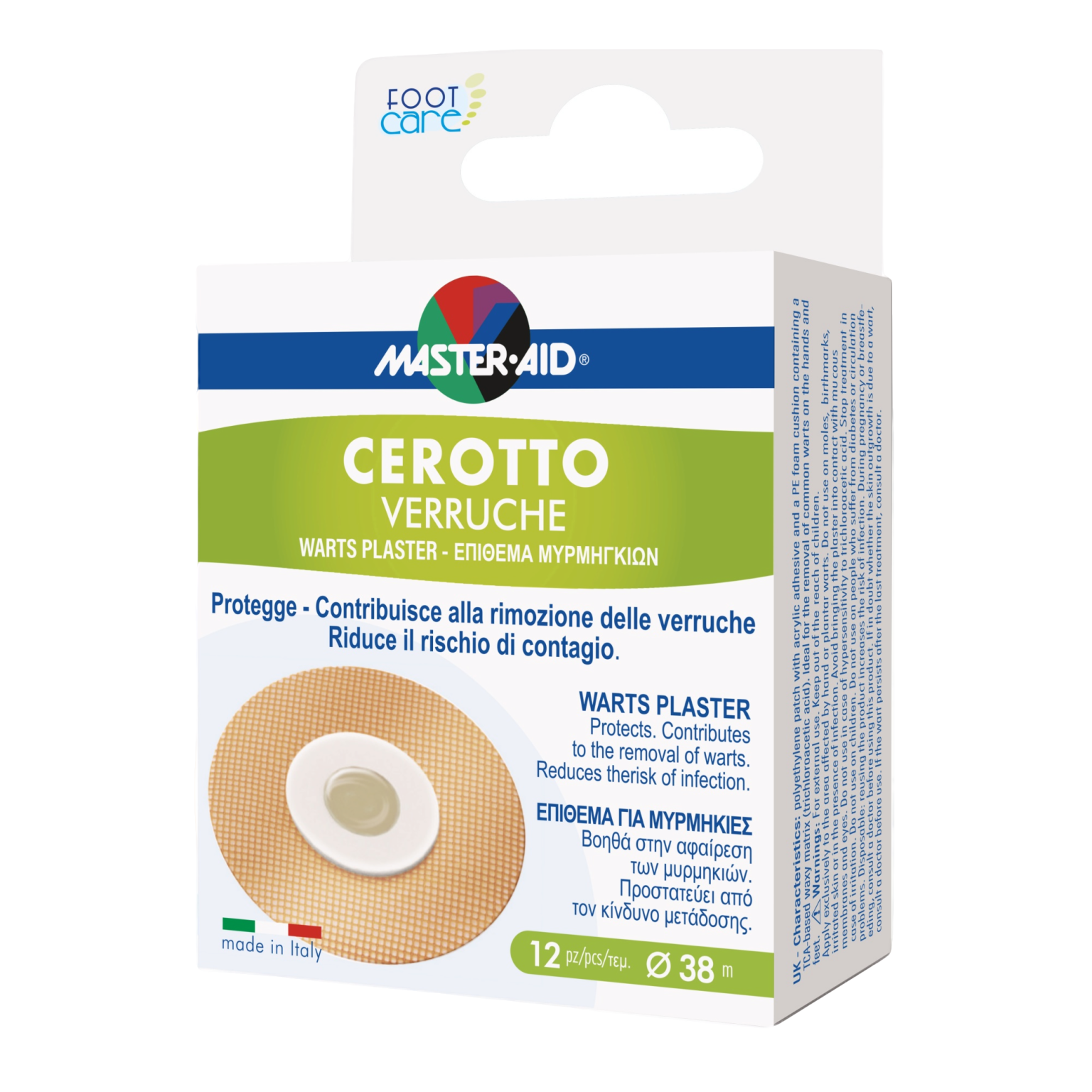 Master-Aid-Footcare-Cerotto-Verruche-E3-38mm-12pz Published 25. srpnja 2025. at 2000 × 2000 in MASTER AID Flaster za bradavice namijenjen uklanjanju bradavica na stopalima, 12 komada