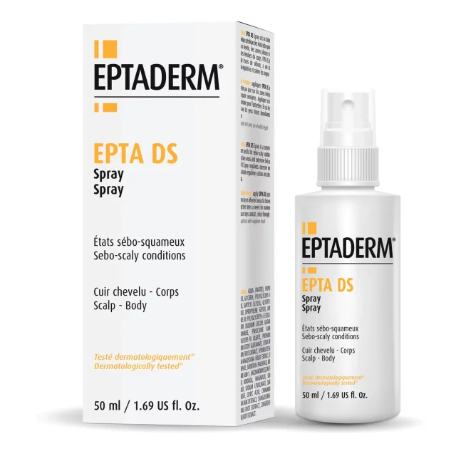 EPTA DS sprej je kozmetički preparat i dio EPTADERM linije EPTA DS osmišljene za pomoć i oporavak vlasišta i kože tijela sklone seboroičnom dermatitisu.