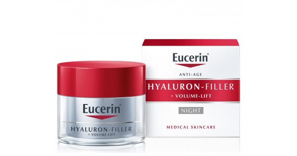 - Eucerin Volume-Filler noćna krema za sve tipove kože utječe na specifične slojeve kože i tijekom noći se bori protiv opuštanja, smanjenja volumena kože lica i gubitka definicije kontura lica.