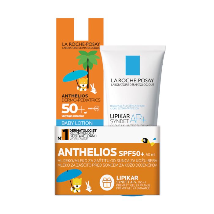 La Roche-Posay Anthelios DP Mlijeko za zaštitu od sunca za osjetljivu kožu beba SPF50+ 50 ml + La Roche-Posay Lipikar Syndet Kremasti gel za tuširanje obogaćeno lipidima protiv nadraženosti i svrbeža 100 ml