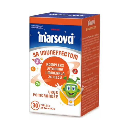 Marsovci sa ImunEffectom je dodatak ishrani za djecu koji doprinosi jacanju imuniteta i pravilnom rastu i razvoju. Jedinstveni ImunEffect kompleks sadrži beta glukan, cink, vitamin C i bioflavonoide. Dokazana efikasnost i bezbjednost.