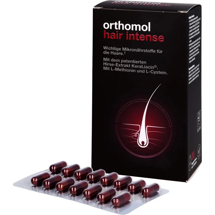 Orthomol Hair Intense je dodatak prehrani formulisan za podršku zdravlju kose iznutra. Namijenjen je osobama koje se suočavaju s pojačanim opadanjem kose, prorijeđenom, oslabljenom ili hemijski tretiranom kosom.