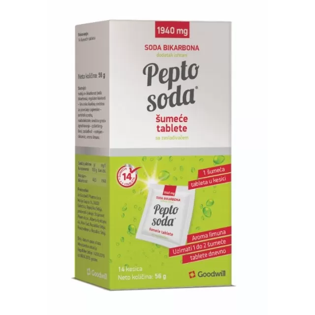Pepto Soda je jedinstveni dodatak ishrani u vidu šumećih tableta čiji je aktivni sastojak soda bikarbona i koristi se za neutralisanje hlorovodonične kiseline u želucu. Pepto Soda doprinosi smanjenju gorušice, otklanjanju bola i drugih tegoba koji prate prekomjerno lučenje želudačne kiseline.