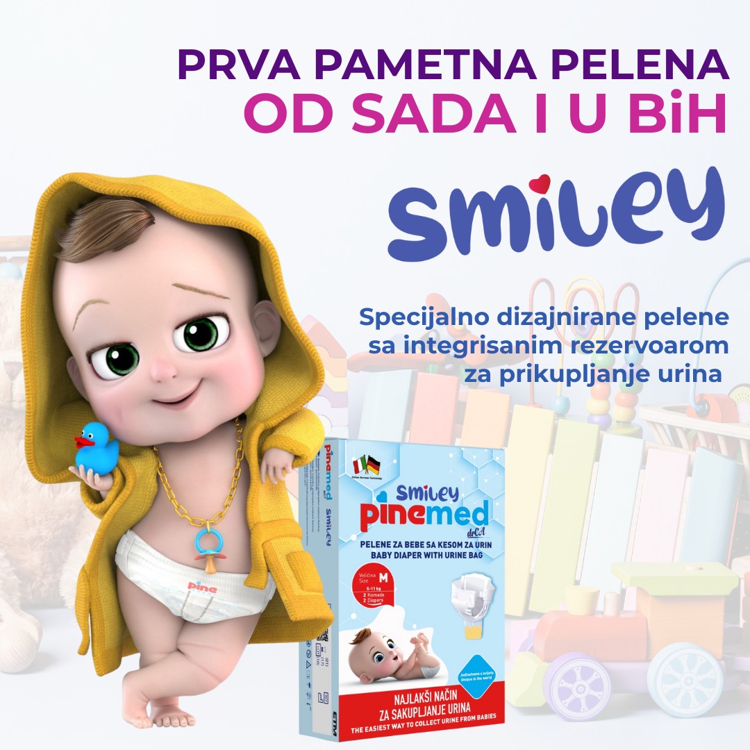 Smiley PineMed pelene su posebno dizajnirane pelene sa integrisanim rezervoarom za prikupljanje urina, koje služe kao alternativa za prikupljanje uzoraka urina za analizu kod beba.