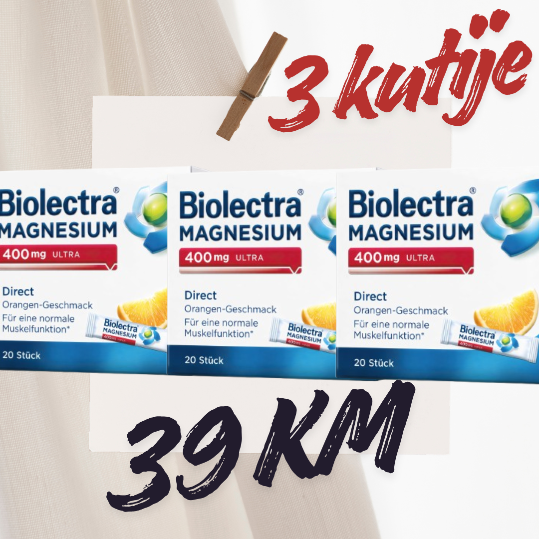 POSEBNA PONUDA: 3 KUTIJE (60 VREĆICA) BIOLECTRA MAGNEZIJ ULTRA 400mg ZA 39 KM (OKUS NARANDŽE)