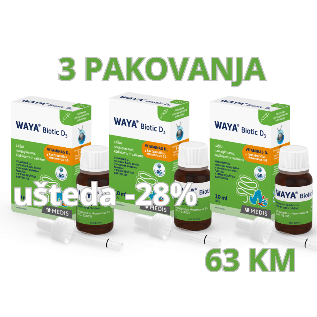 Proizvod ima prirodno prisutan talog, stoga prije svake upotrebe dobro protresite bočicu. Nakon mućkanja proizvod postaje prirodno mutan. Proizvod je neutralnog mirisa i okusa. Kapi WAYA D3 upotrebljavajte najmanje dva tjedna. Primjerene su i za dugotrajnu primjenu. Najbolje je uzeti kapi samostalno na žličici. Ako se liječite antibiotikom, uzmite kapi barem 2 sata prije ili poslije primjene antibiotika.