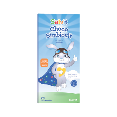 Salvit Choco Simbiovit A20 je dodatak prehrani u obliku ukusnih čokoladnih medvjedića, osmišljen da na jednostavan i prijatan način podrži ravnotežu crijevne mikroflore.